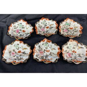 Kutani Ware Pottery Bowl Meiji Individual Dishes Lot of 6 Antique 6" x 5.5"