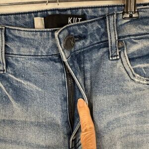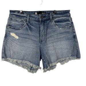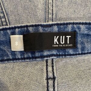 Kut from the Kloth Jane High Rise Long Shorts Distressed Blue Denim Size 8. Excellent condition. See photos for details and unstretched measurements. A true high rise, relaxed fit short will soon become a wardrobe staple. The destruction throughout, along with a frayed hem give off a vintage style. This pair will stretch to comfort without losing their shape. Shop my closet and bundle multiple items for discounts and one shipping fee! casual, summer, spring, fall, daisy duke, cutoff shorts, jean shorts, school, campus