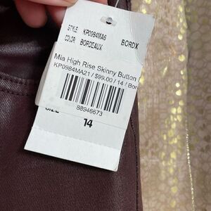 Kut from the Kloth Mia High Rise Skinny Wet Look Bordeaux Jeans 14 NWT
