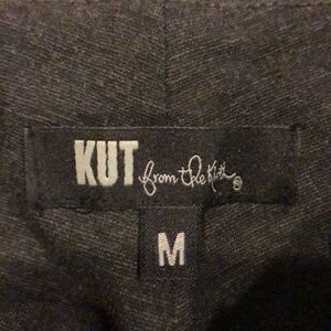 Charcoal grey legging called Angie Skinny with black elastic on the side. Gently worn. Inseam approx 29”. Made of polyester, rayon and spandex. VD.
