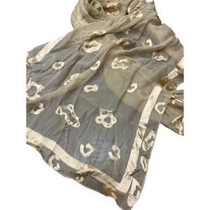 shawl, wrap, silk scarf, abstract pattern, Kuwait Lady, beige scarf, golden scarf, elegant accessory, luxury scarf, women's silk scarf, formal wear, sheer scarf, fashionable scarf, lightweight scarf, dressy scarf