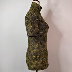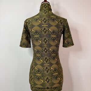 Kwaidan Editions Stretch Top Yellow Geometric Size XS Zip Y2K Psychedelic Techno