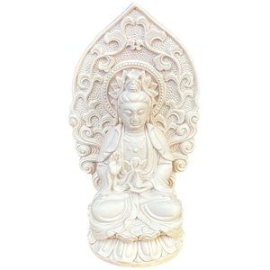 Elevate your space with the tranquil essence of our Kwan Yin Statue, exquisitely crafted in smooth ivory resin. This 5-inch figurine captures the gentle spirit of the Goddess of Compassion, making it an ideal piece for creating a calming ambiance in your home. ✨