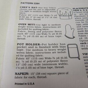 Kwik Sew 2284 Clothing Sewing Pattern NEW UNOPENED Chef Hat, Oven Mitt, etc.