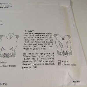 Kwik Sew 2339 Clothing Sewing Pattern NEW UNOPENED Pet Pillow Cat, Bunny Rabbit, Tiger