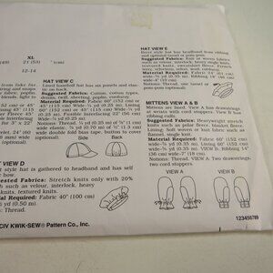 Kwik Sew 2373 Clothing Patterns Summer Winter Hats & Mittens UNCUT