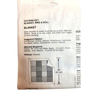Some of the pattern has been cut but does not hurt the pattern. The patterns are completely usable. A versatile sewing pattern to create a charming baby blanket, bibs, and a soft doll. Ideal for crafting thoughtful and practical baby gifts.