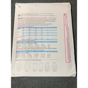 Kwik Sew K4199 Womens Jacket Tank Top Skirt Pattern Sizes 1X-4X uncut