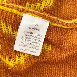 Gold-y mustard /rust print. Please note. Color is not this bright in person. Much more muted. Camera and lighting are distorting.