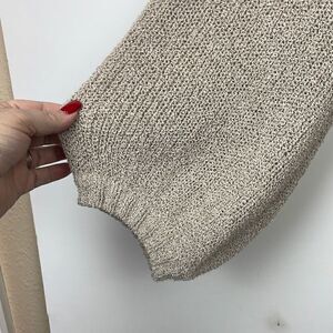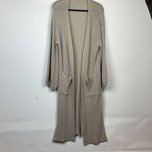 Kye Mi Women's Knitted Open Front Bishop sleeve Long Cardigan Sweater Tan Small