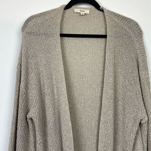 Kye Mi Women's Knitted Open Front Long Cardigan Sweater Tan Small