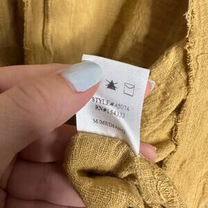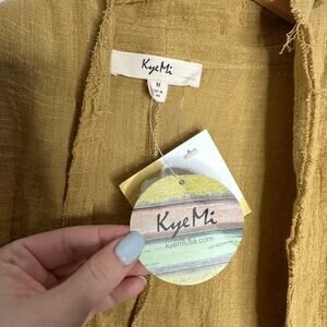 Kye Mi Women’s Mustard Cotton Tie Waist Bell Crochet Sleeved Cover Up Size M NWT