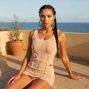 With ribbed velvet texture, a sleeveless silhouette & warm brown hue, it’s made for moonrise movement, capsule shoots or meditative mornings.