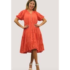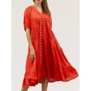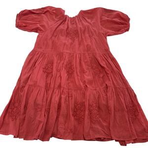 Kyla Seo Dress Womens Medium Red Orange Posie Embroidered Boho Cotton