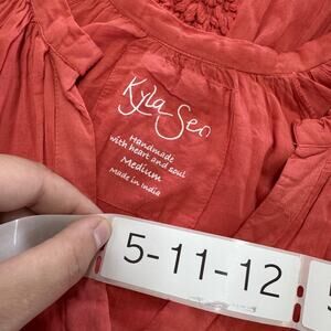 Kyla Seo Dress Womens Medium Red Embroidered Button Front Boho Tunic