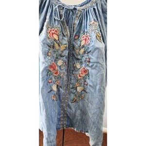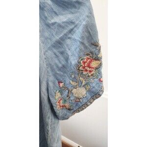 Kyla Seo Embroidered Betty Denim Shirt XL Floral Boho Button Down Western Top