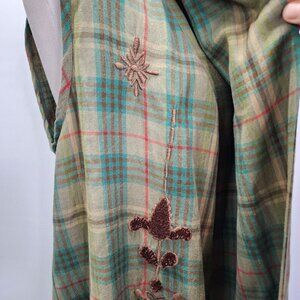 Kyla Seo Green Plaid Embroidered Open Front Sleeveless Cardigan Small EUC