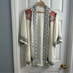Kyla Seo Handmade Cardigan Kimono Shawl Embroidered Boho Linen Size Extra Small
