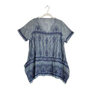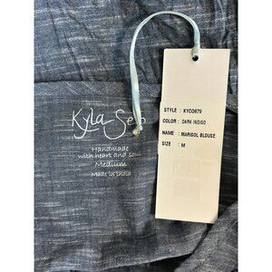 Kyla Seo Short Sleeve Embroidered Blouse in Dark Indigo - Sz M - NWT