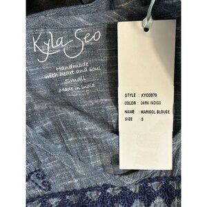 Kyla Seo Short Sleeve Embroidered Blouse in Dark Indigo - Sz S - NWT