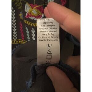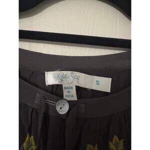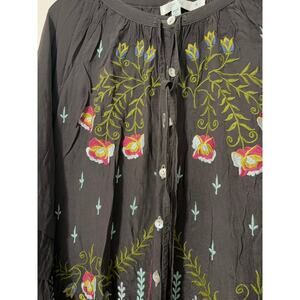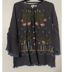 Kyla Seo Size Small Button Up Tie Front Boho Embroidered Ruffle Sleeve Shirt