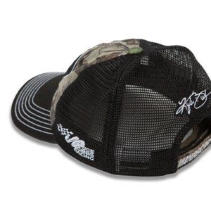 Stay low profile by wearing the Kyle Busch True Timber blackout hat. True Timber camo paneling is on front, with black mesh paneling around the back, as well as embroidered logos, pre-curved brim, and adjustable closure.