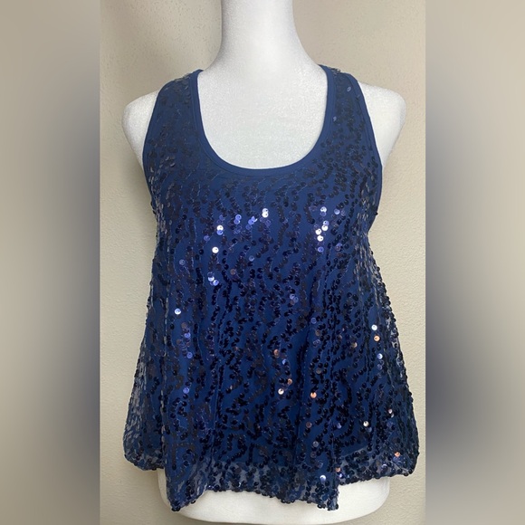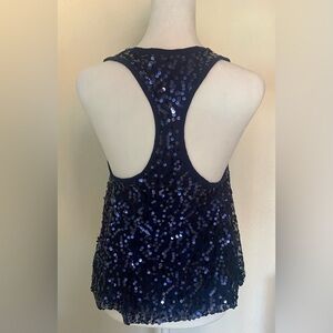 Beautiful Navy Blue Sequined Racerback Crop Tank Top