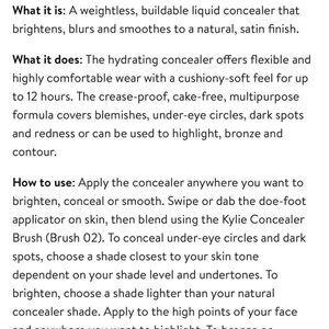 Experience seamless coverage with Kylie Cosmetics' Cream Concealer, designed for a flawless, long-lasting finish. This concealer effortlessly blends into the skin, providing a smooth and natural look that lasts all day. Perfect for achieving a polished complexion, it is a must-have in any makeup routine.