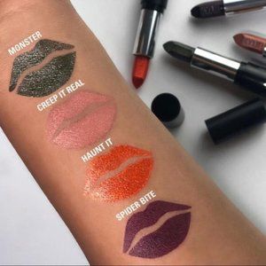 The Kylie Cosmetics Halloween Collection's Matte Lipstick is a smooth and creamy formula that provides full coverage for an ultra-pigmented lip. The hydrating matte lipstick glides onto the lips for a comfortable matte finish. Wear alone or pair with your favorite gloss for a high shine finish.