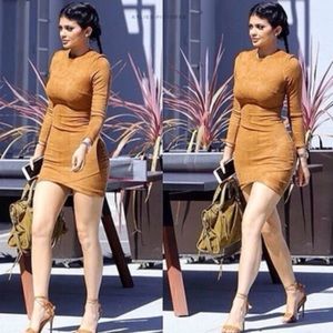 Kylie Jenner Skin Tight Faux Suede Bodycon Dress