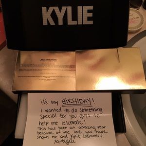 Authentic Kylie Mini Matte Birthday Edition set of 6 mini liquid matte lipsticks in the shades Exposed, Candy K, Dolce K, Koko K, Kristen and Leo. Invoice shown to prove authenticity. Price is firm due to Poshmark's 20% cut. Hope you understand.