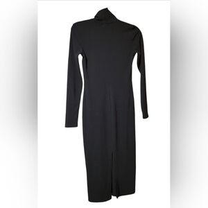 Kylie Paige Black Turtleneck Maxi Jersey Dress Slit In Back Size Small