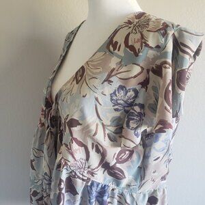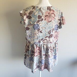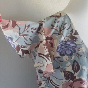 Kylie Paige LA Artsy Floral Babydoll Flutter Sleeve Top Blouse Pastel Size L