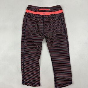 Kyodan Black Coral Striped Cropped Capri Leggings Size S Stretch Zipper Pocket