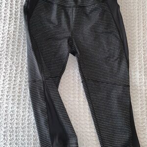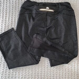Kyodan black and gray striped workout legging. Back waist band zip pocket. Great condition as they are lightly worn.