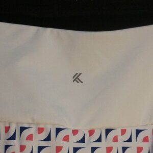 Kyodan Golf Athletic Skort. White with Navy and Pink Retro Pattern. A Line. Stretchy. White Shorts Under Skirt. Polyester Blend. Women’s Size Small. New with Tags. See Small Dot on Back Waistband.