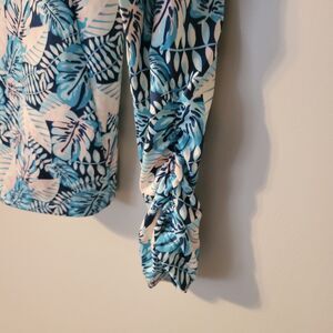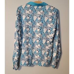 Kyodan Long Sleeve Golf Polo Top Blue Multi UPF 50+ Tropical Print Large