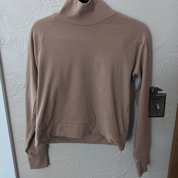 Color is a tan/peach, hard to capture in photos. Soft material. Slightly Cropped