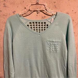 Kyodan Women's Sweater Size Large Blue Long Sleeve Pullover Open Mesh Back