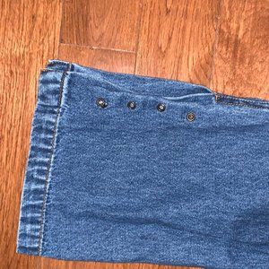 These are a pair of Kyoto Kasuals Capri pants, size 7/8. It has a total of 4 pockets. These pants have embroidered design on the bottom part of the leg with 4 grommets for lacing. I only have the leather lacing for one leg not both, I have no idea where it went, but you can easily just buy leather from any Jewelry supply store to replace it.