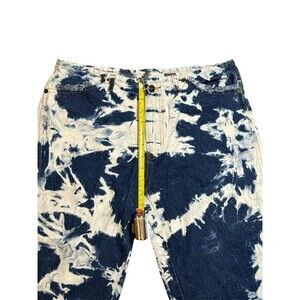 The Kyoto Kasuals EST. 1996 Vintage Y2K Denim Bleach Wash Cropped Capri Size 9/10 are stylish and unique women's jeans with a relaxed fit and a cropped inseam. Made from 100% cotton denim and featuring a tie closure, button, and zipper accents, these jeans are perfect for any season. The vintage design with a bleached acid wash adds a trendy touch, while the slash pockets and mid-rise waist give them a classic look. Ideal for those who love the hipster, festival, grunge, bohemian, 90s, or retro styles, these jeans are a fashionable choice for any wardrobe.