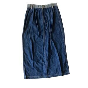 Long medium blue wash denim skirt by Kyoto Kasuals in good preowned condition. No flaws.