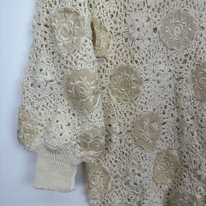Kyouko Japanese Design Studio Women’s Cream Open Knit Floral Appliqué Crop Sweater