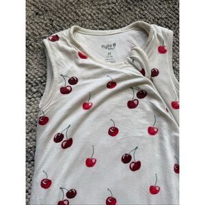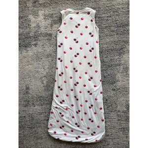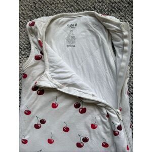 Kyte Baby bamboo sleep bag in cherry print. Size Medium. 1.0 TOG. Good preowned condition, some minor discoloration near collar.