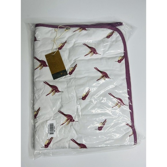 New with tags in bag Kyte Baby retired print hummingbird with mulberry backing and trim baby size blanket, measures 33" x 33", 1.0 tog. Please review all photos prior to purchase.