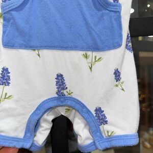 Kyte Baby shortall romper bamboo bluebonnets short sleeve girl periwinkle Texas