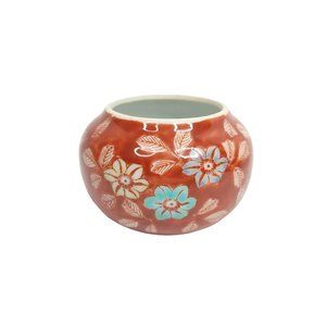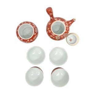 Kyusu Teapot with 4 Cups Small Tea Set Asian Rusty Red Floral Bowl Vase Tea Saki