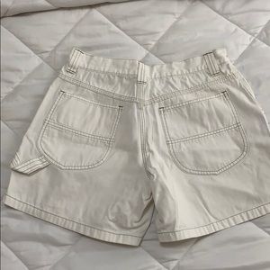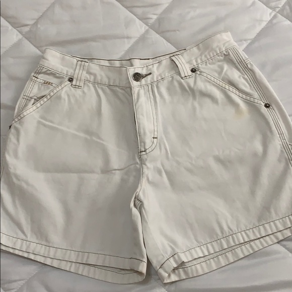Es un short blanco de mezclilla stretch. Está usado pero en buenas condiciones