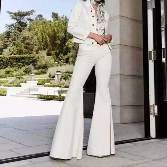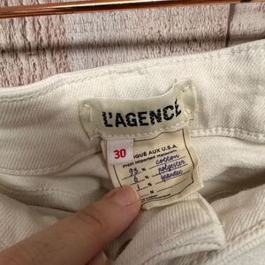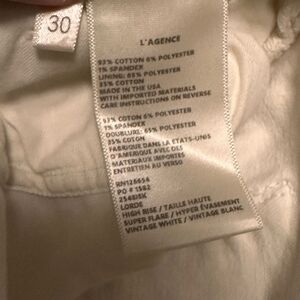 L’ Agence Lorde super high rise flare jeans in vintage white. High waisted. Stretch. Size 30. Measurements provided. Excellent pre owned condition. Retail $275 aprox