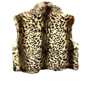 L Adrienne Landau Crop Leopard Print Rabbit Fur Vest Chub